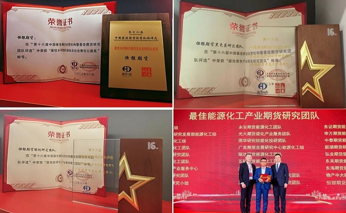 本屆評選于今年4月啟動,在歷時四個多月,經(jīng)過手機(jī)投票、專家評審等環(huán)節(jié),恒銀期貨最終榮獲“最佳能源化工產(chǎn)業(yè)期貨研究團(tuán)隊”、“最佳黑色產(chǎn)業(yè)期貨研究團(tuán)隊”以及“最佳鄉(xiāng)村振興服務(wù)及社會責(zé)任公益獎”。