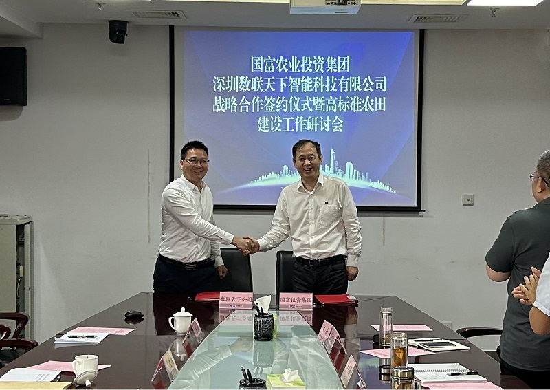 7月2日,國富農業(yè)投資集團與深圳數聯(lián)天下智能科技有限公司簽訂戰(zhàn)略合作協(xié)議,為國富農業(yè)投資集團加快培育農業(yè)新質生產力、打造省內一流高標準農田建設項目注入科技新活力。國富農業(yè)投資集團黨委副書記、副董事長、總經理張立忠,集團黨委常委、常務副總經理馬國棟,集團黨委委員、副總經理李其強,及相關業(yè)務骨干同數聯(lián)天下副總裁鄧才良一行進行工作研討并見證簽約儀式。