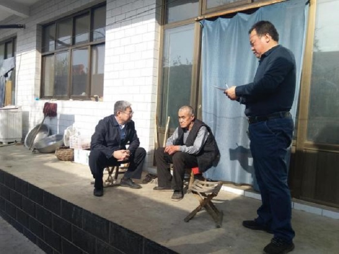韓繼普副書記與貧困戶葛義志促膝交談,關(guān)心老人的身體健康狀況,詢問冬季取暖情況,宣講黨的政策,并叮囑老人保重身體。