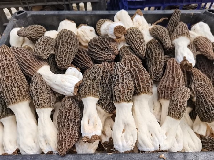 眼下正值羊肚菌豐產(chǎn)期,在北店頭鎮(zhèn)西同籠村的三十多個溫室大棚里,羊肚菌長勢喜人,村民們正在忙著收割、打包,一派忙碌景象。